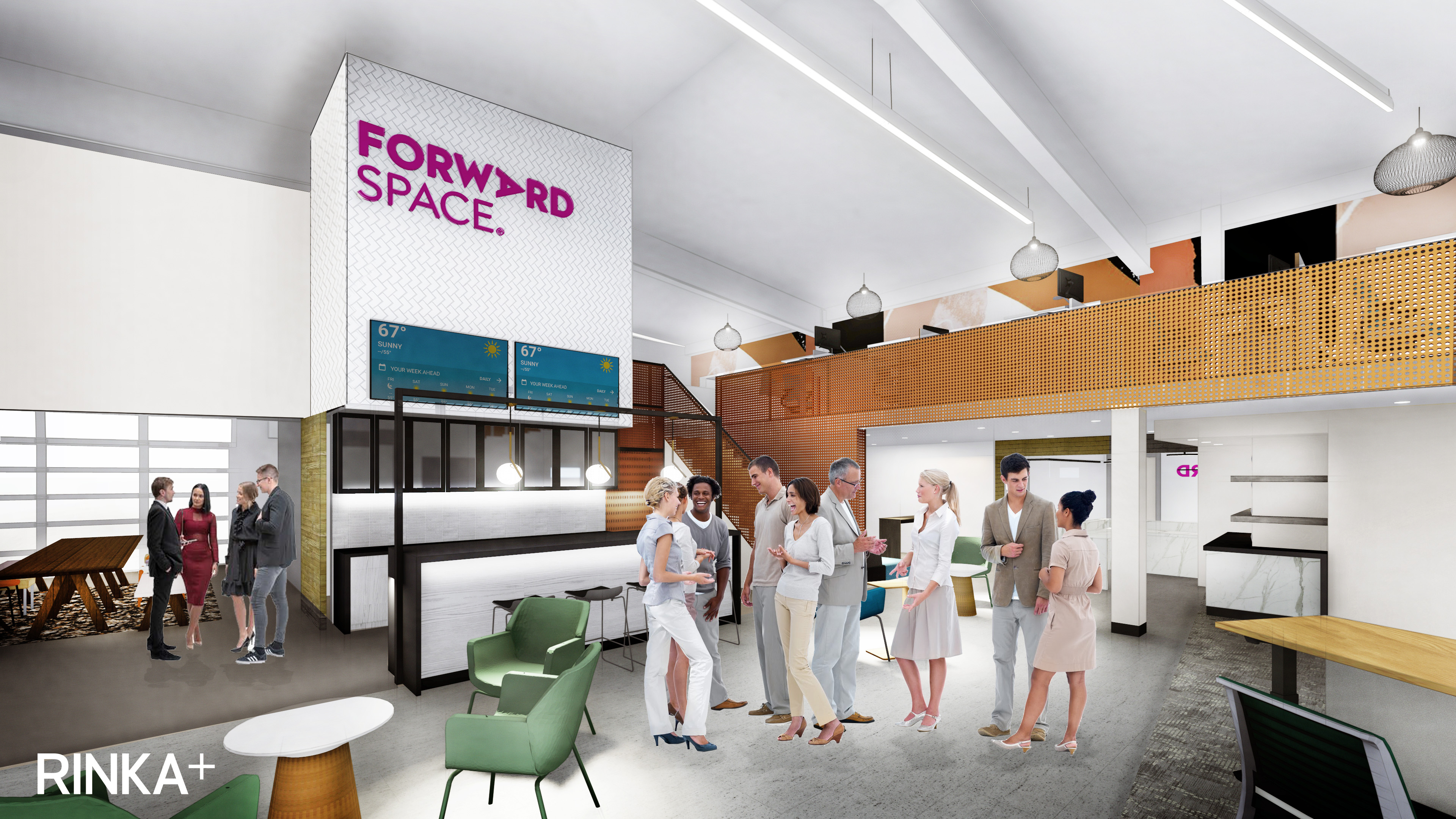 Forward Space and the Druml Company are working with RINKA to renovate the building’s interior, intended to house a dual-purpose workspace and furniture showroom. In the works are the demolition of interior walls to create a grand view to the river from the entrance, as well as the incorporation of a centrally-located social kitchen, employee work café, mezzanine overlooking the main floor, glass garage doors to access adjacent outdoor work and event spaces, and patio on the river. The space will also feature a meditation/wellness room, flexible and mobile workstations and collaboration settings, customer oasis, meeting zone with glass-walled conference rooms and phone booths for teleconferencing, as well as individual rooms to feature education and healthcare furniture settings.