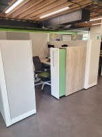 Steelcase High Density Storage Units were included with each workstation to provide a safe place to store alternate attire for concert nights. They strategically function as a door to shield the occupant from the rest of the office, offering visual privacy when pulled out completely. These changes to both the look and function of their office were enthusiastically received by the staff.