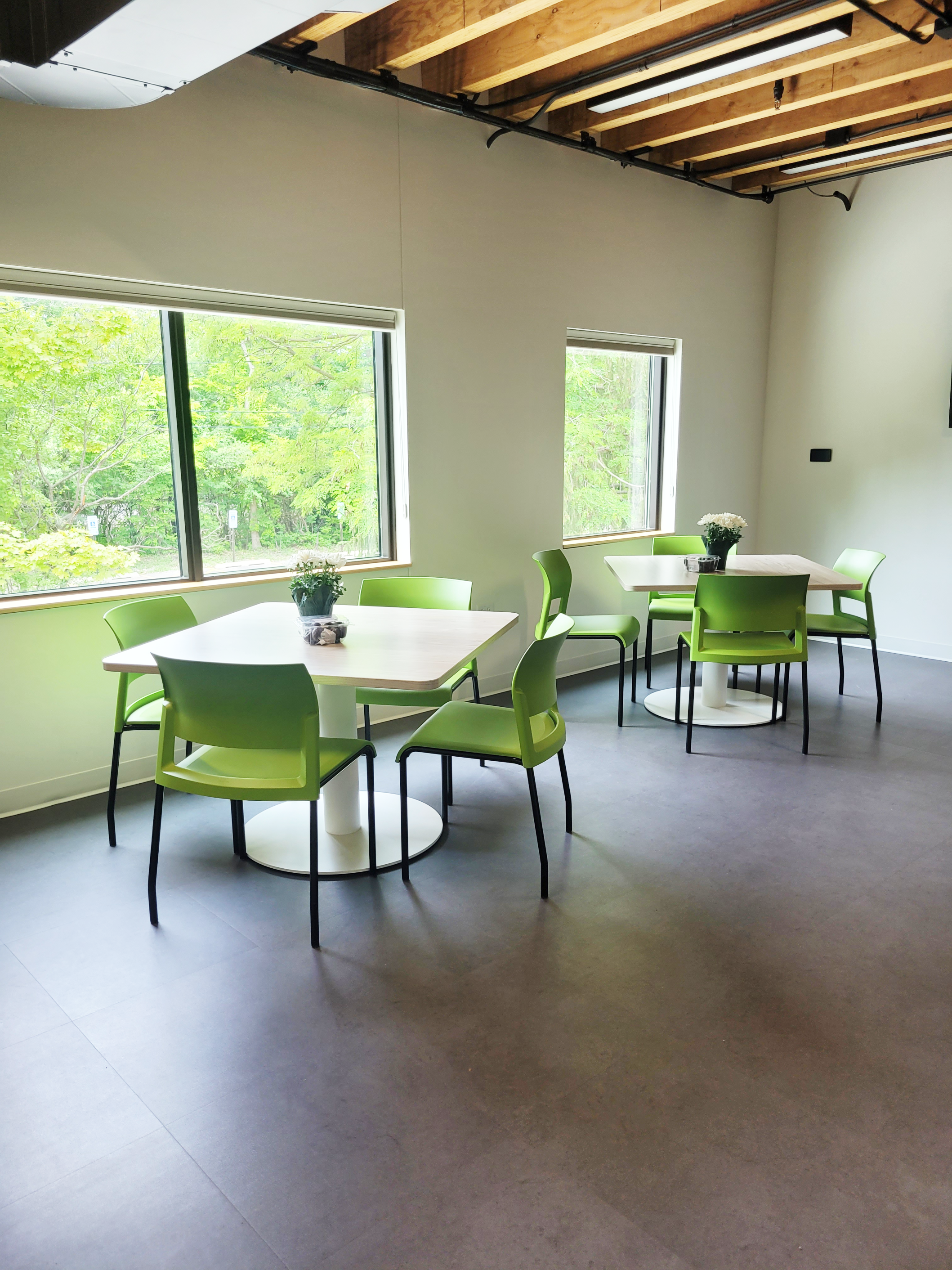 Fitting more workstations into the space while continuing support of employee physical and mental well-being was a primary goal. Our designers took advantage of the smaller size of the new workstations by incorporating cockpit-like convenience into their build. These workstations feature easy-to-access storage and enhanced ergonomics with Steelcase height-adjustable desks and award-winning Series 1 ergonomic task chairs. Tackable tiles were added to encourage team members to make the space their own. Ravinia employees were quick to make use of these, and workstations were soon filled with artwork, family photos, and Ravinia’s iconic performance calendars.